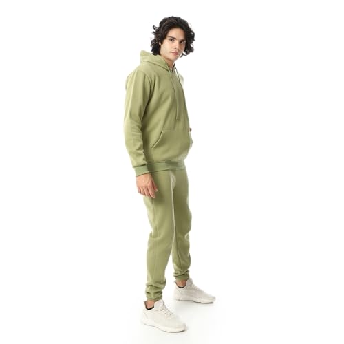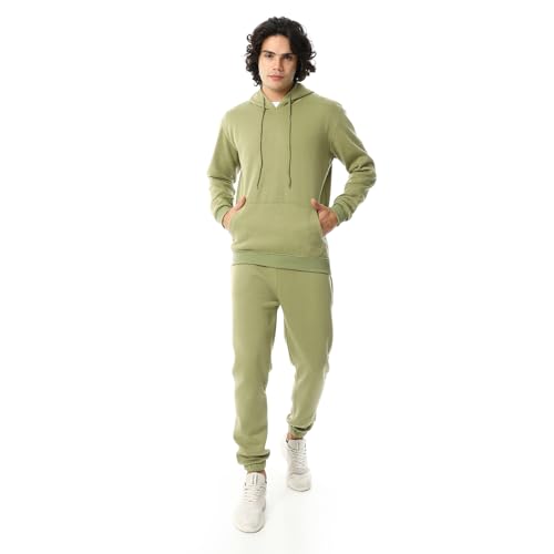 Red Cirlce - طقم بدلة رياضية بغطاء رأس للرجال مرن ومريح عند الكاحل من ريد سيرلس، زيتوني غامق