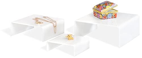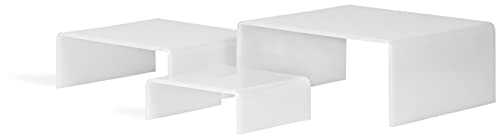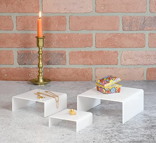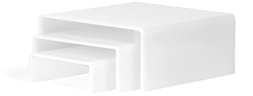 Red Co. - ريد كو. حوامل عرض اكريليك منخفضة الارتفاع - للمجوهرات ومستحضرات التجميل وعرض المجسمات، باللون الأبيض اللامع، مجموعة من 3 قطع.