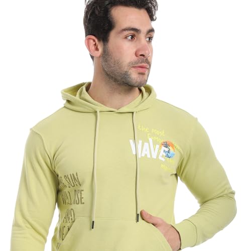 RED COTTON - سويت شيرت بغطاء للرأس مطبوع من القطن الاحمر - اخضر فاتح - مقاس L