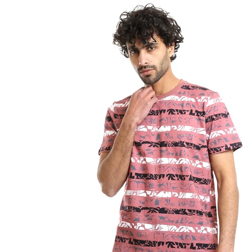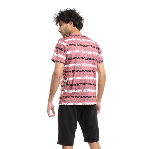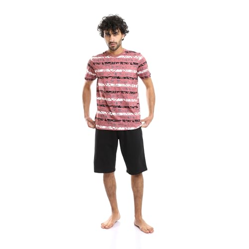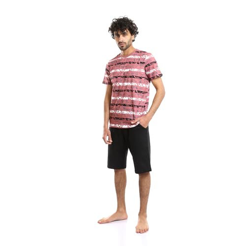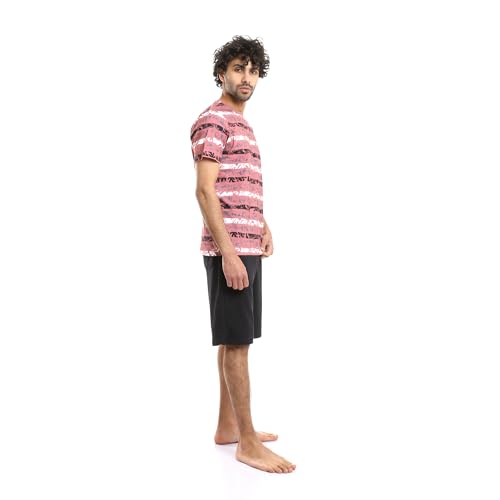 RED COTTON - طقم بيجامة مكون من تيشرت مطبوع عليه زهور وشورت سادة للرجال من ريد قطن