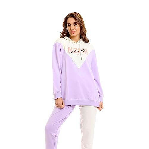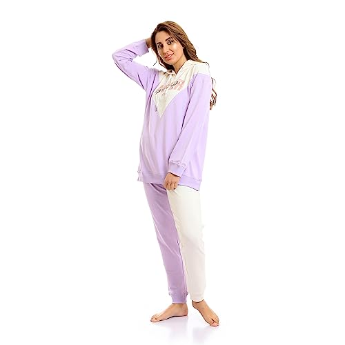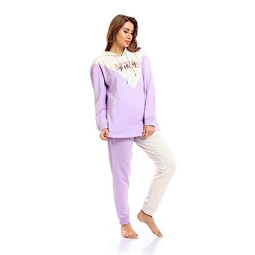 RED COTTON - طقم بيجامة من سويت شيرت برقبة بسوستة وبنطلون من القطن للنساء من ريد قطن