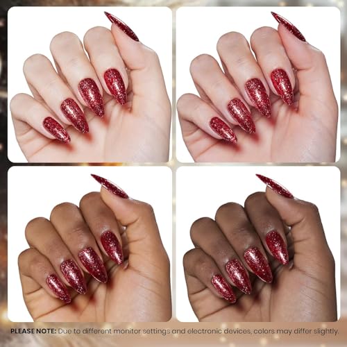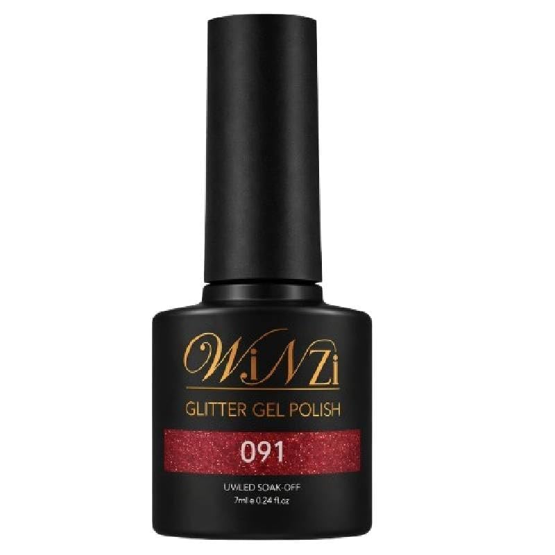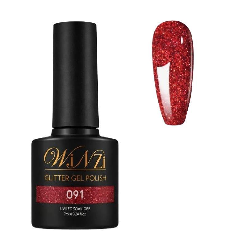 WINZI - طلاء اظافر جل احمر جليتر 7 مل، طلاء جل لامع لامع مقاوم للاشعة فوق البنفسجية، تطبيق سلس، لمسة نهائية شديدة اللمعان، لون يدوم طويلا لصالونات المانيكير وفن الاظافر بنفسك (091)