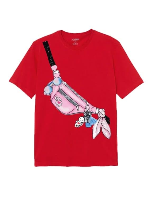 Generic - تي شيرت بطبعة فاني باك بلون احمر واكمام قصيرة (6-9 سنوات)