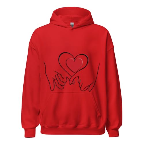 Generic - هودي احمر مع رسومات على شكل قلب واكمام طويلة مع جيب لعيد الحب مقاس (4XL)