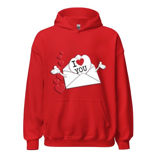 Generic - هودي احمر مطبوع عليه عبارة "I Love You" على شكل ظرف، عيد الحب، مقاس (S)
