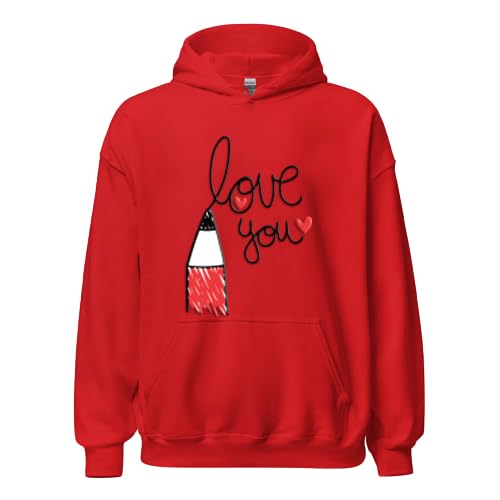 Generic - هودي احمر مع طباعة رسومات Love You، جيب امامي، كنزة صوفية بنمط عيد الحب مقاس (XL)