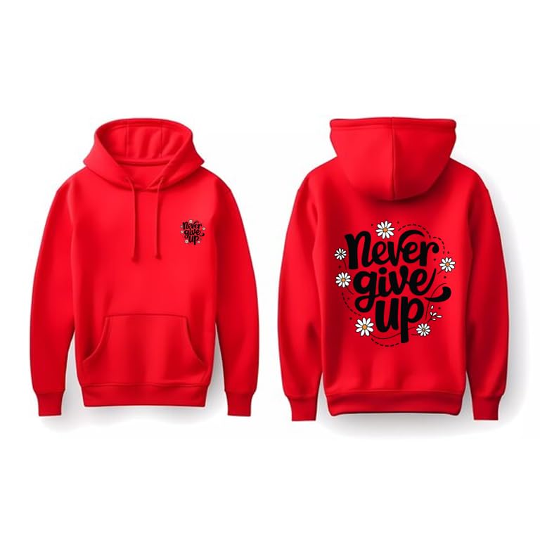 Generic - هودي احمر مع شعار Never Give Up، جيب امامي، تصميم زهرة الاقحوان مقاس (6-9 سنوات)