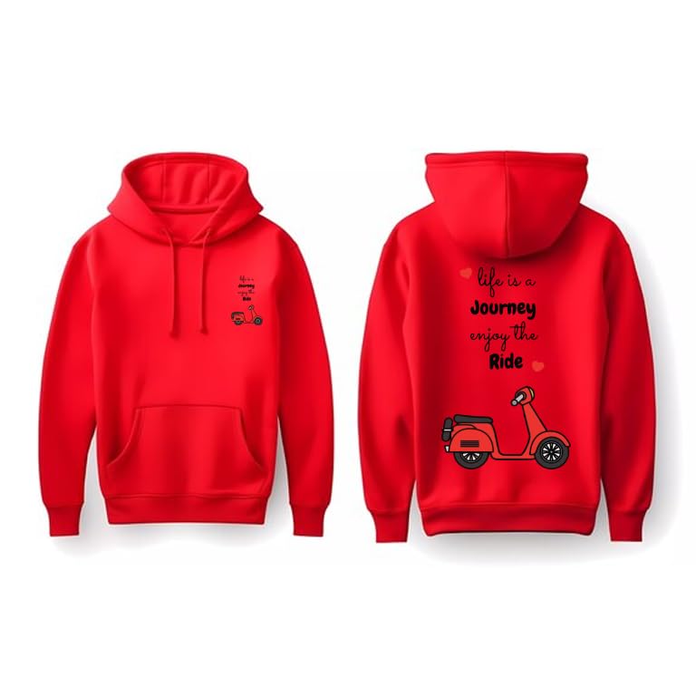Generic - هودي احمر مع طباعة سكوتر ، Life is a Journey Enjoy the Ride Quote، مقاس الجيب الامامي (S)