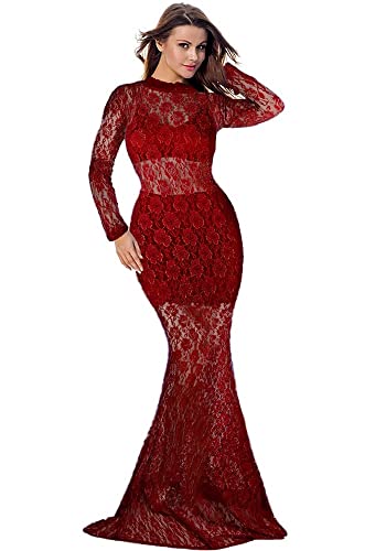 Generic - فستان لانجري دانتيل احمر مع جيب خلفي مكشوف الظهر ، للنساء