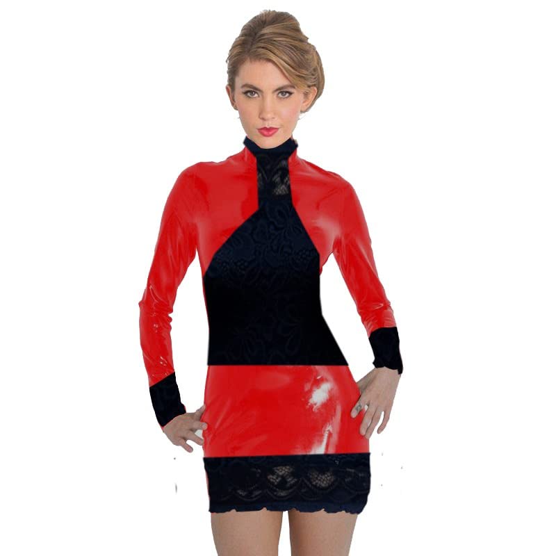 Generic - لانجرى جلد أحمر على شكل فستان مزين بدانتيل جذاب نساء