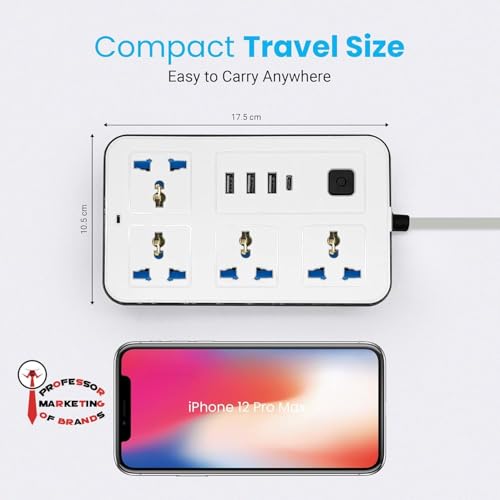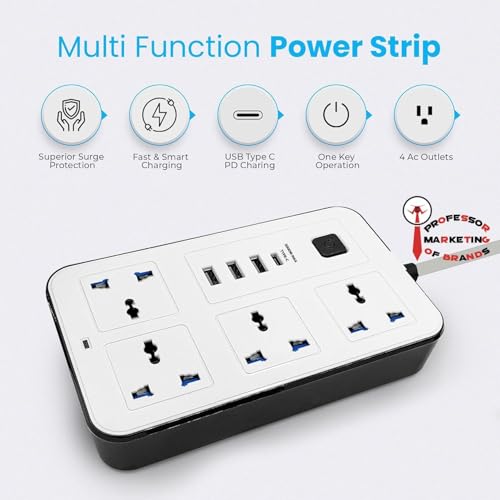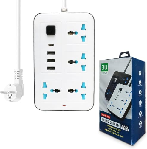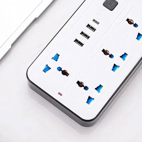 Generic - مشترك كهرباء من رد لاين بطول 2 مترا يحتوى على 4 مقابس عالمية و3 منافذ USB و1 نوع سي