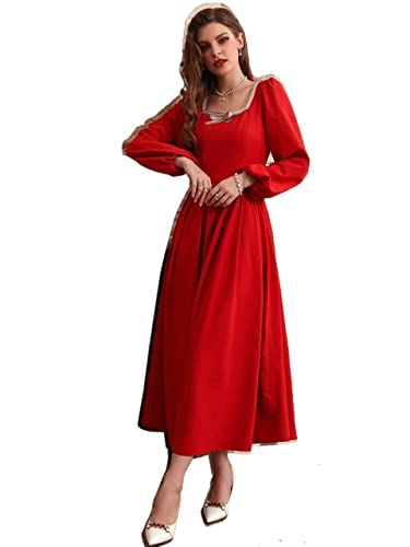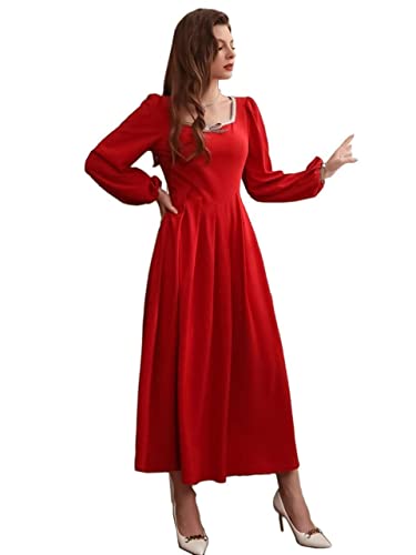 Generic - فستان طويل باكمام طويله احمر مناسب لجميع المناسبات نساء
