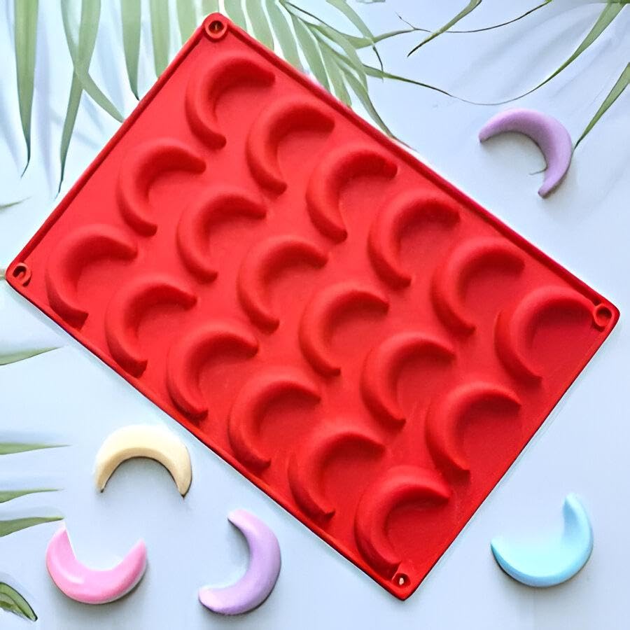 Generic - قالب أحمر على شكل هلال لصنع الحلويات والصابون بتصميم سيليكون سهل الفك، قطعة واحدة