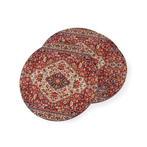 Generic - قواعد أكواب بتصميم سجادة شرقية - قواعد أكواب خشبية بتصميم سجاد تقليدي، مقاومة للحرارة ومتينة - مجموعة من 4 قطع، لون أحمر