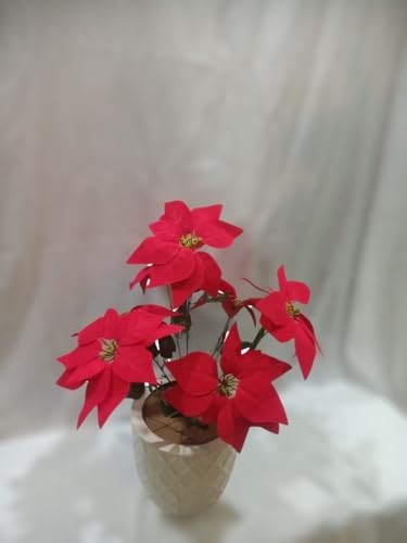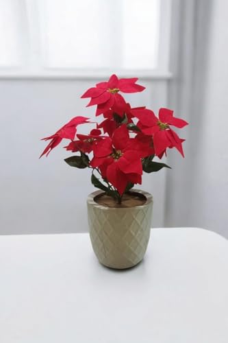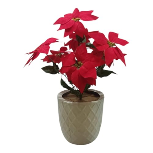 Generic - فازة زهور البوينسيتيا الحمراء في مزهرية بيضاء