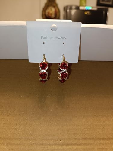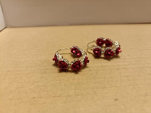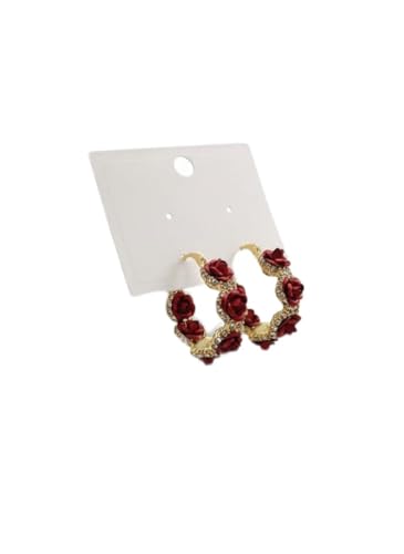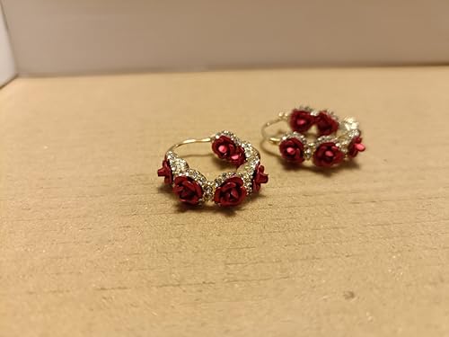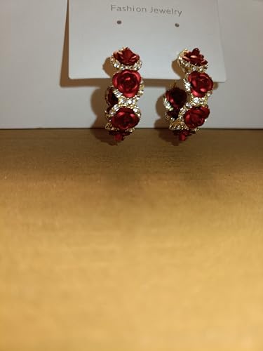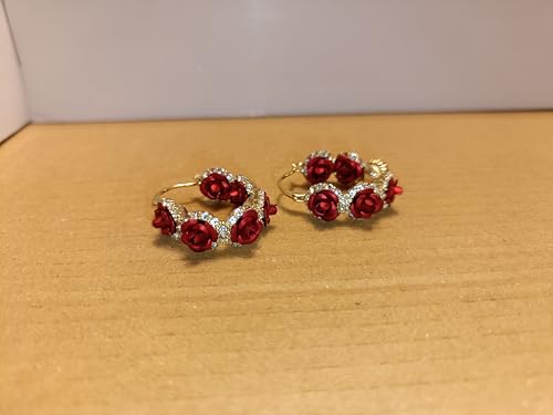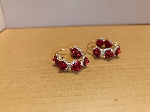 Generic - أقراط دائرية بورود حمراء وكريستال ذهبية، حلق أنيق للنساء بتصميم زهور