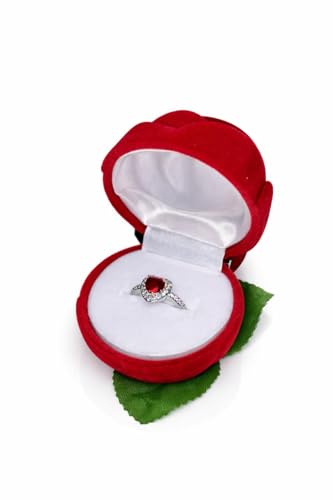 Generic - علبة خاتم مخملية على شكل وردة حمراء، صندوق مجوهرات للخطوبة والزفاف، مع خاتم حجر أحمركريستال