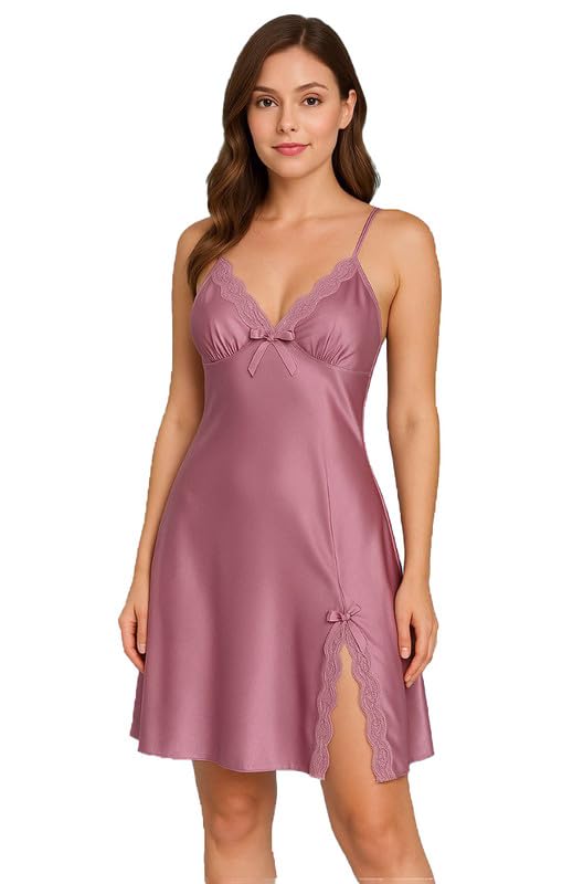 generic - فانلة داخلية انيقة من الساتان بلون احمر مع فتحة جانبية 100751105 مقاس واحد