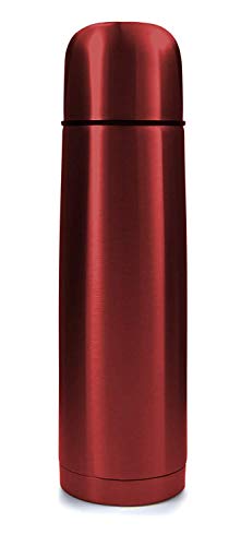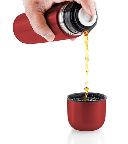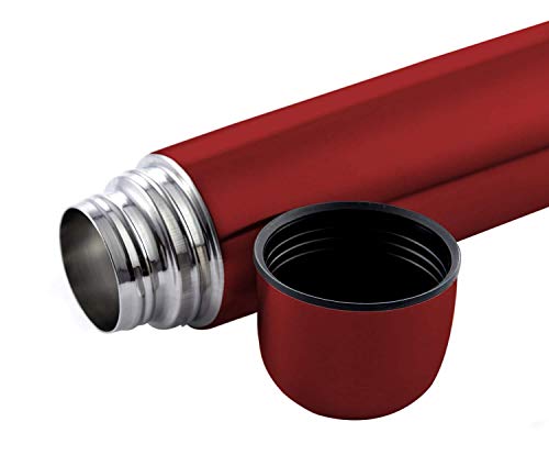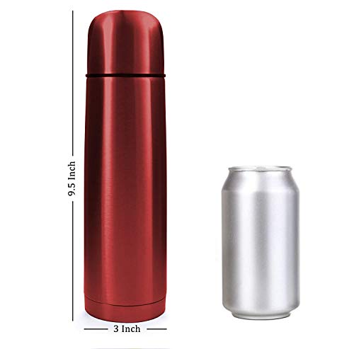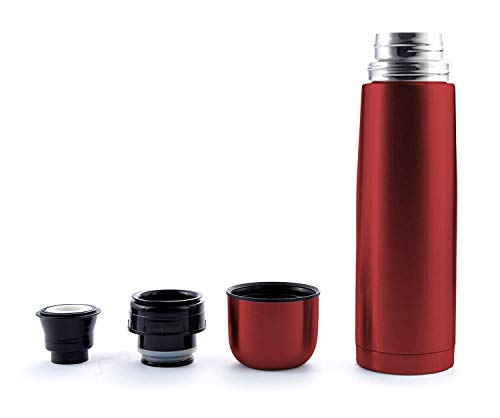Other - قارورة حمراء من الستانلس ستيل معزولة بتفريغ الهواء: تصميم ثيرموس مع غطاء يستخدم ككوب وسدادة لمنع التسريب عند الصب، 16.9 اونصة، للمشروبات الساخنة والباردة