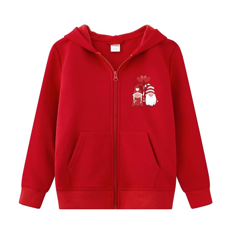 Generic - هودي بسحاب احمر مع تصميم جنوم، جيوب امامية، موضوع الكريسماس (3-6 سنوات)