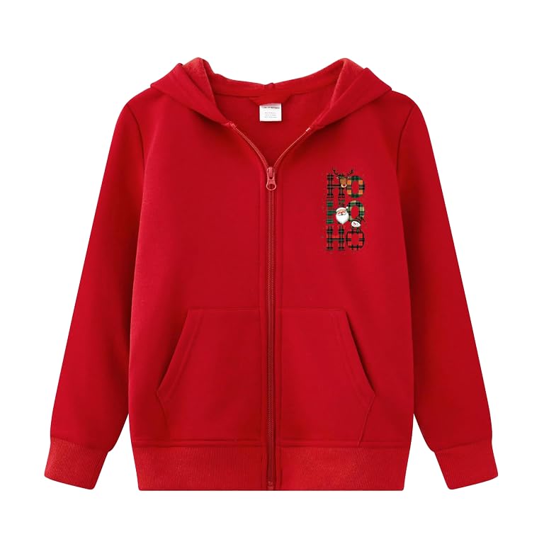 Generic - هودي بسحاب احمر مع موضوع عيد الميلاد هو هو هو، جيوب امامية، اغلاق بسحاب كامل (3-6 سنوات)
