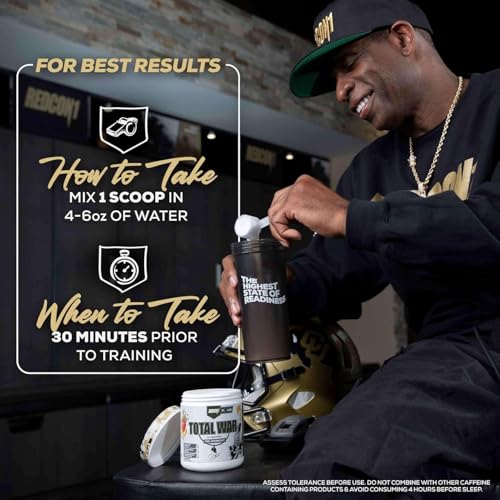Redcon1 - ريد كون١ مسحوق ما قبل التمرين من توتال وور - حلوى الخوخ - سريع المفعول يحتوي على الكافيين قبل التمرين للرجال والنساء مع بيتا الانين - يحتوي على مالات السيترولين لزيادة المضخة، تدفق الدم (30 حصة)