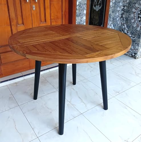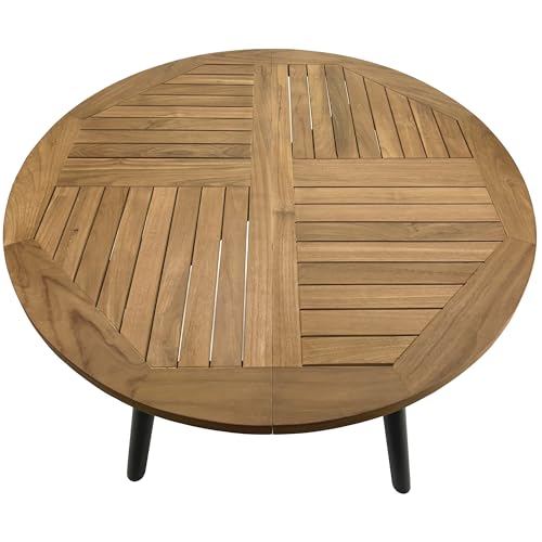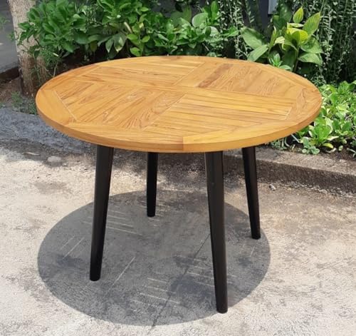 - طاولة كبيرة مستديرة من خشب الساج الصلب (قطر 41.75 انش) مصنوعة من خشب الساج المصقول الناعم عالي الجودة للاستخدام في الأماكن المغلقة/الخارجية