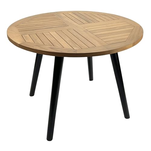 Redmon - ريدمون طاولة ساج دائرية من خشب الساج الاصلي بقطر 42 انش للاماكن الخارجية وصالة الطعام والفناء مع ارجل خشبية ايبونية، ارتفاع 29.5 انش