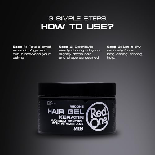 Redone - جيل شعر بالكيراتين لتصفيف وتثبيت الشعر بقوة فائقة غني الكيراتين المهدرج وفيتامين اي من ريدون، 400 مل