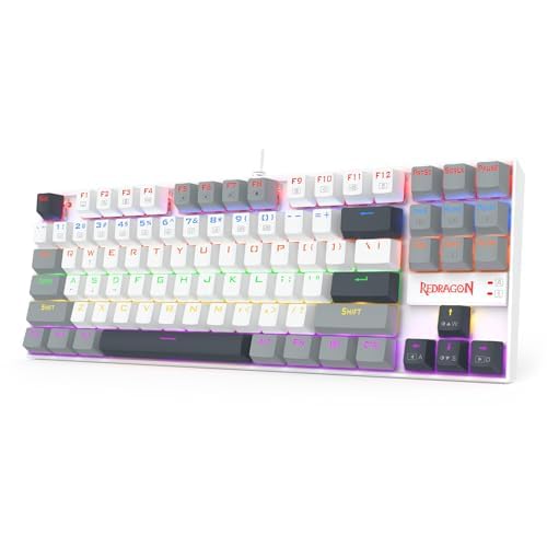 Generic - كيبورد ريدراجون USB موديل K552 WGL-R مع إضاءة خلفية و مفاتيح PBT باللون الأبيض والرمادي والأخضر متوافق مع الكمبيوتر عربي/إنجليزي