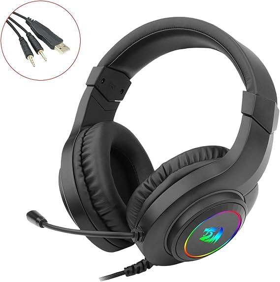 Generic - سماعة ألعاب Redrag.on HYLAS H260 بإضاءة RGB، تصميم مريح فوق الأذن، اتصال USB سلكي، صوت محيطي واضح، مايك ثابت بجودة عالية، مناسبة للكمبيوتر ,اللابتوب – لون أسود