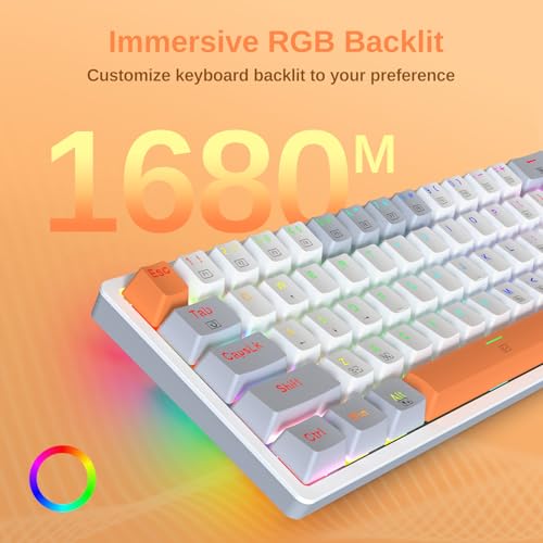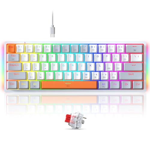 Redragon - لوحة مفاتيح ميكانيكية 60%، بسلك وتصميم مدمج للألعاب، إضاءة خلفية ار جي بي ومفتاح أحمر قابل للتبديل السريع، قابلة للبرمجة بالكامل لأجهزة ويندوز واللاب توب والكمبيوتر وماك بلون أبيض ورمادي، K642WGO