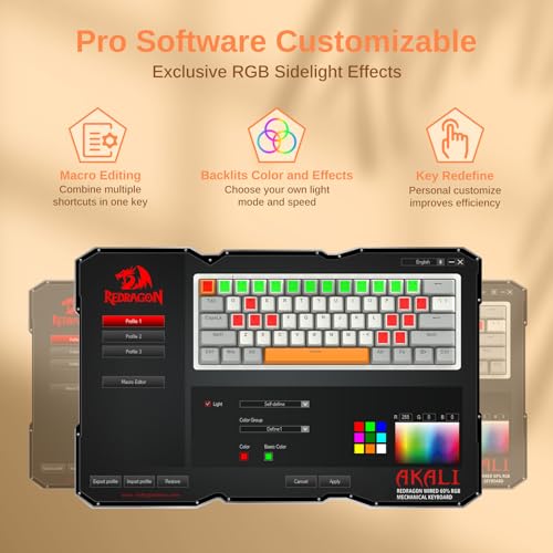- 🌈 إضاءة ار جي بي ساحرة: ارتقِ بتجربة اللعب الخاصة بك مع 20 وضع إضاءة خلفية ار جي بي مبهرة و5 خيارات إضاءة خلفية جانبية. اضبط درجة السطوع وسرعة التنفس لتناسب مزاجك. بفضل برنامج ريدراجون يُمكنك تخصيص ألوان وتأثيرات الإضاءة الخلفية، مما يضمن تجربة لعب وكتابة غامرة لا مثيل لها.