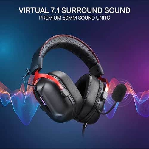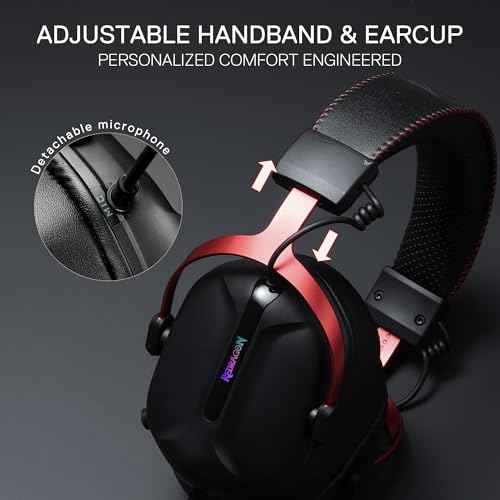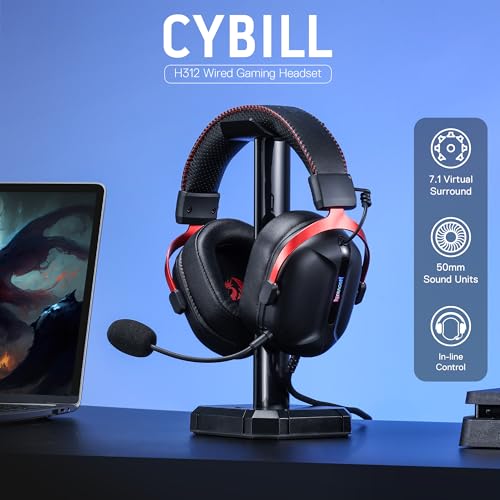 Redragon - سماعة رأس للألعاب سايبيل H312 بنظام صوت محيطي 7.1 وإضاءة ار جي بي ومنفذ USB من ريدراجون، لون أسود، على الأذن