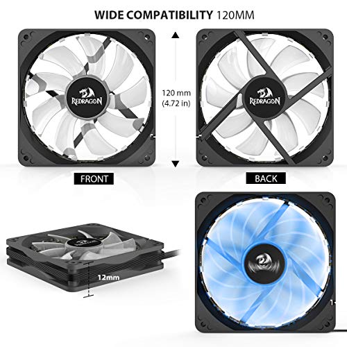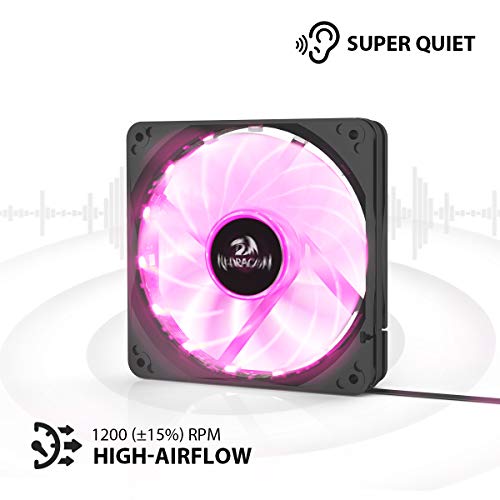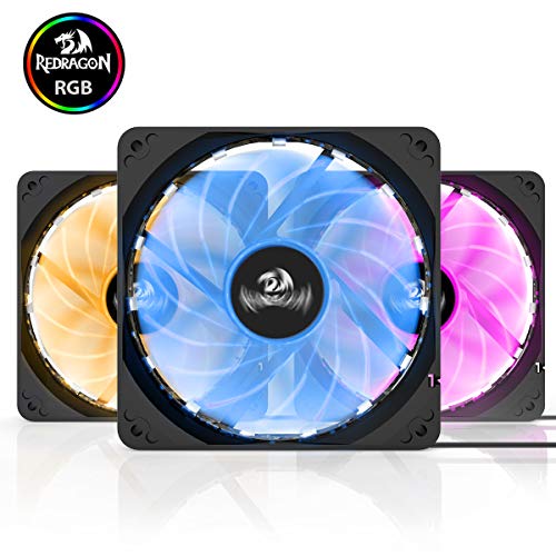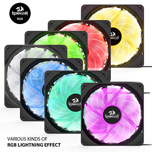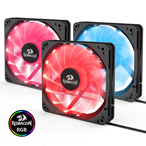 Redragon - جراب كمبيوتر GC-F006 من ريدراجون باضاءة ليد ار جي بي بتدفق هواء هادئ ومروحة قابلة للتعديل مع جهاز تحكم عن بعد (120 ملم) - مجموعة 3 قطع، 4-Pin