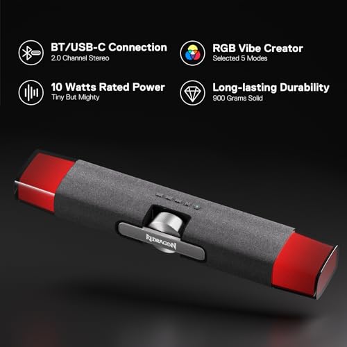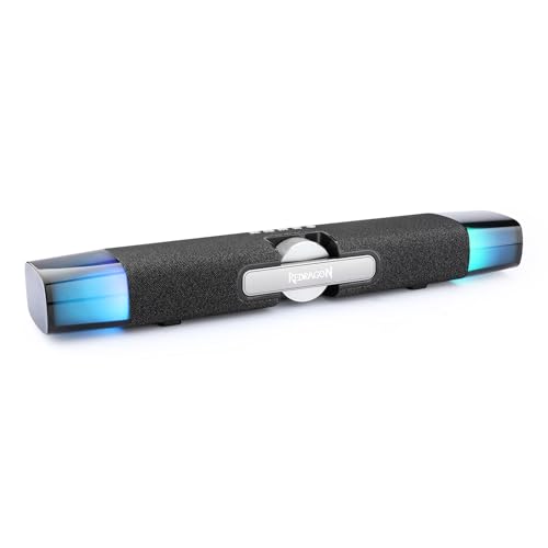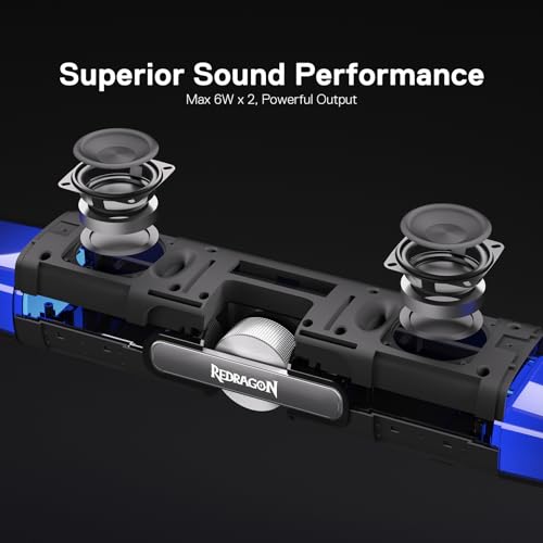 Redragon - مكبرات صوت لاسلكية لسطح المكتب GS512 من ريدراجون، مكبر ستيريو للكمبيوتر 2.0 مع وضع بلوتوث 5.0 USB، بحد أقصى 6 وات × 2 غني، إضاءة خلفية RGB، أسود