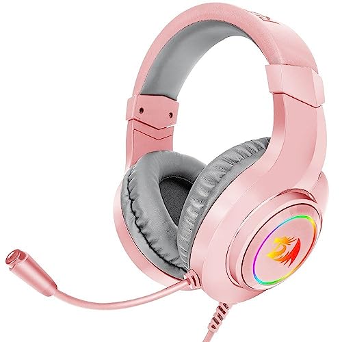 Redragon - ريدراجون سماعة راس ستيريو للالعاب H260 هيلاس RGB - مشغلات 50 ملم - ميكروفون لتقليل الضوضاء - للكمبيوتر / بلاي ستيشن 4 / اكس بوكس / الموبايل // بينك، سلكي، فوق الأذن، زهري