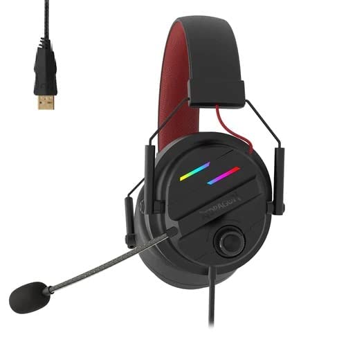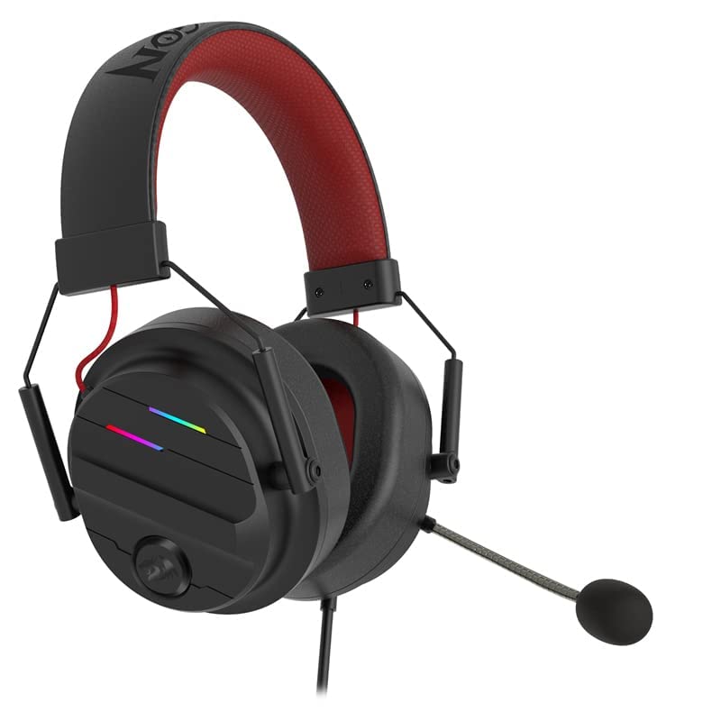 Redragon - سماعة رأس للالعاب H380 شيرون USB من ريدراجون - اضاءة RGB وصوت محيطي افتراضي 7.1 - ميكروفون بخاصية الغاء الضوضاء، سلكي، فوق الاذن، أسود