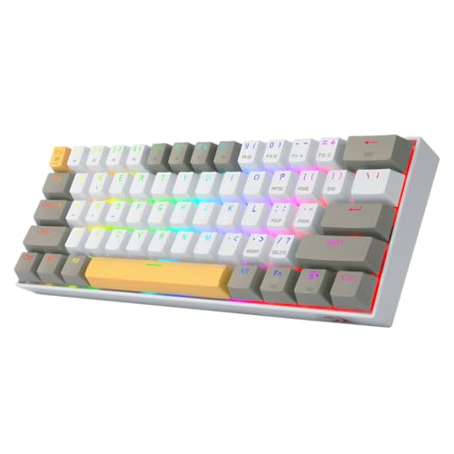 Redragon - لوحة مفاتيح ميكانيكية لاسلكية مضيئة من ريدراجون K530 دراكون 60% بحجم مضغوط وألوان الفضاء اللوني ار جي بي - مفتاح بني -أبيض /رمادي