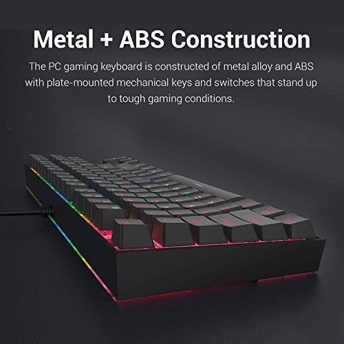 - كيبورد ميكانيكال للالعاب 87 مفتاحًا مع مفاتيح ميكانيكية مخصصة (مكافئة لشيري بلو) تصميم متين ذو استجابة فائقة السرعة ستعيش طويلاً.