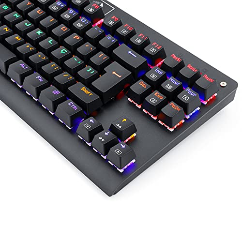Redragon - لوحة مفاتيح دارك افنجر ميكانيكية للالعاب K568R من ريدراجون - مفتاح ازرق - اضاءة ليد بالوان قوس قزح - اسود، USB