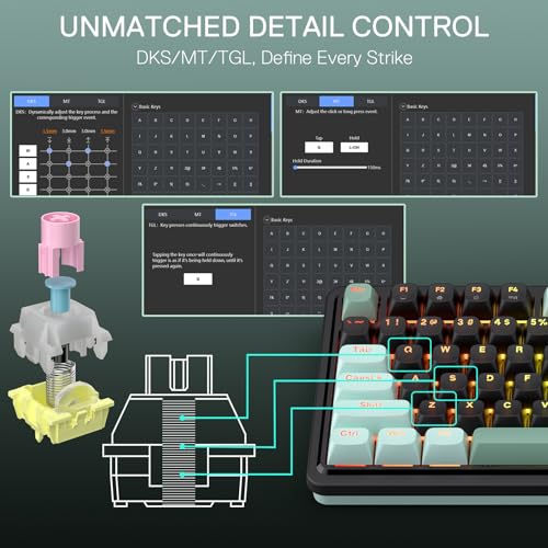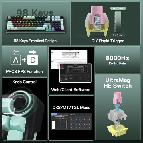 Redragon - ريدراجون كيبورد العاب كيه 686 اتش اي رابيد تريجر ميكانيكي سلكي 8K مع مفتاح مغناطيسي حريري من الجيل التالي الترا ماج 100% بي او ام، تصميم هيكل عائم مزدوج حاصل على براءة اختراع، طبقتين مخففة للضوضاء