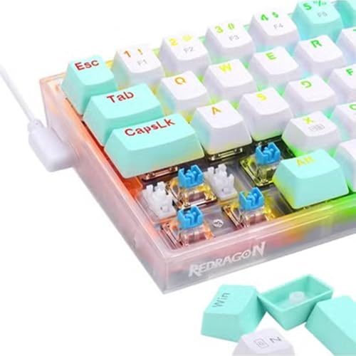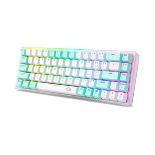 Redragon - لوحة مفاتيح ألعاب ميكانيكية سلكية من ريدراجون K631 كاستور 68 مفتاح، تصميم مدمج 65% مع إضاءة خلفية RGB، وكابل USB نوع C قابل للفصل وأنواع مفاتيح متعددة ودعم ويندوز وقابلة للتبديل السريع، مفاتيح زرقاء