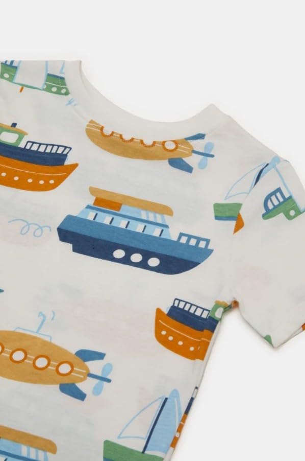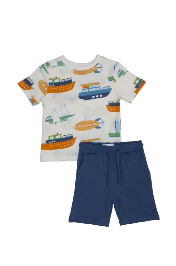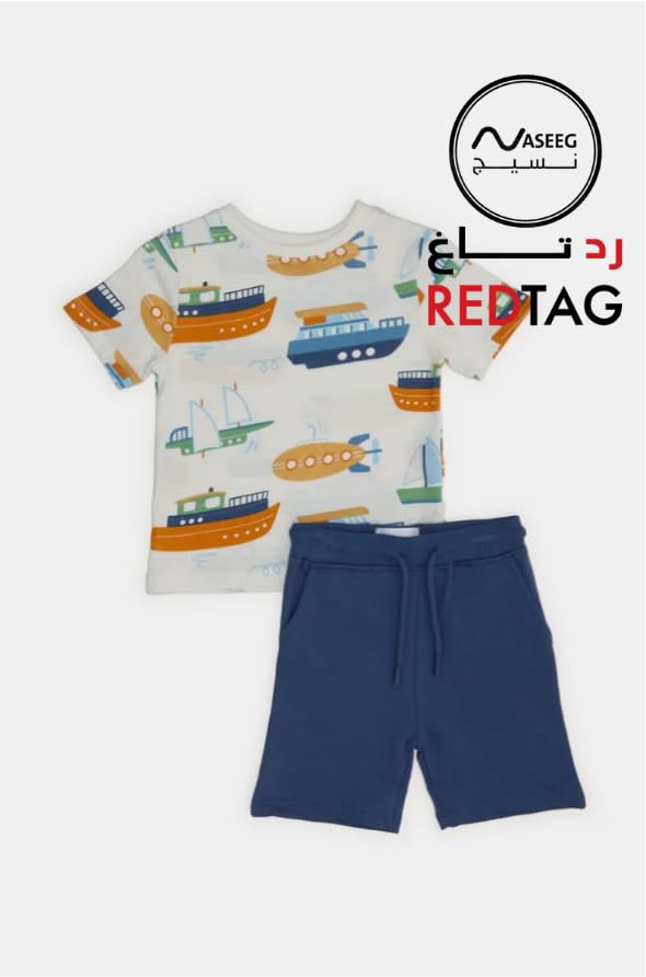 Generic - طقم تي شيرت وشورت بحري للاولاد الصغار من ريدتاج، بلوزة قطنية بطبعة قارب وشورت ازرق كحلي، 3-6 اشهر