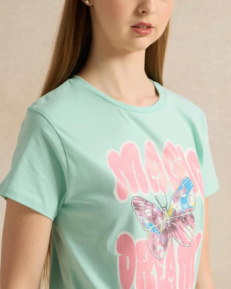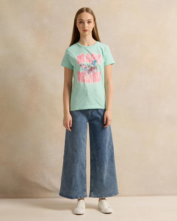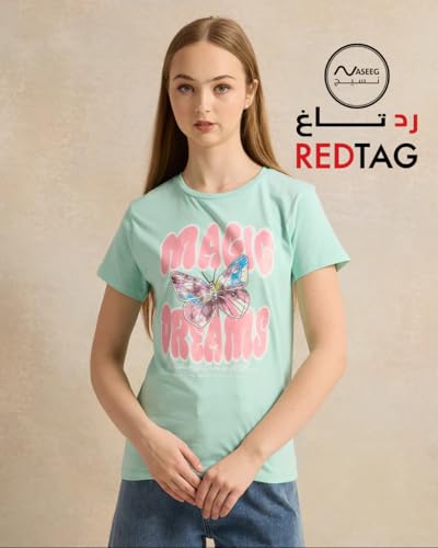 Generic - تيشرت ردتاج مطبوع للبنات الكبار، أخضر