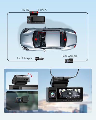 - [سهلة التركيب] قم بتركيب كاميرا السيارة A3 في منتصف الزجاج الأمامي لمزيد من الرؤية. - - -