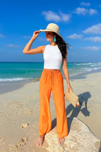 Reebelle - بنطلون كتان بارجل واسعة للنساء من ريبيل