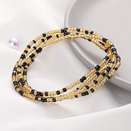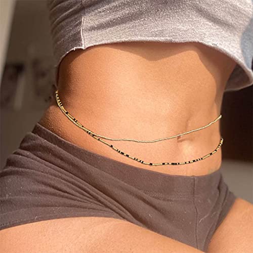 REETAN - خرز خصر مرن من الريتان بطبقات بوهو سلسلة جسم ملونة للشاطئ بيكيني، للجسم، اكسسوارات مجوهرات للنساء والبنات (قطعتين)