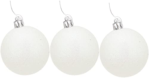 Refela - كرات ريفيلا للزينة للكريسماس 3 قطع - 7 سم، ابيض وفضي، خامات متعددة