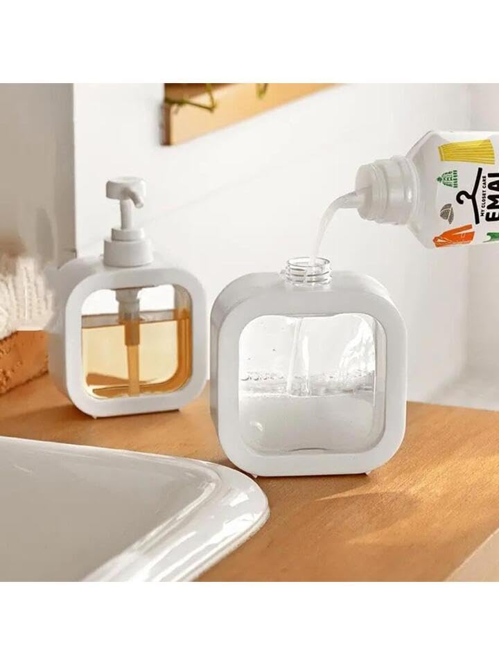 Generic - موزع صابون سائل قابل لإعادة التعبئة، زجاجة بتصميم شفاف عصري للحمام سعة 500 مل (لون أبيض)